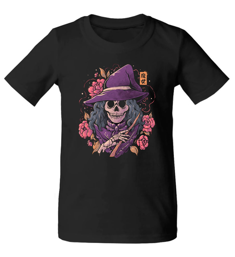 Эта стильная черная футболка с изображением ведьмы в виде скелета станет отличным дополнением к вашему гардеробу. Уникальный дизайн привлечет внимание окружающих, а качественный материал обеспечит комфорт в течение всего дня. Идеальный выбор для любителей необычных и запоминающихся образов.