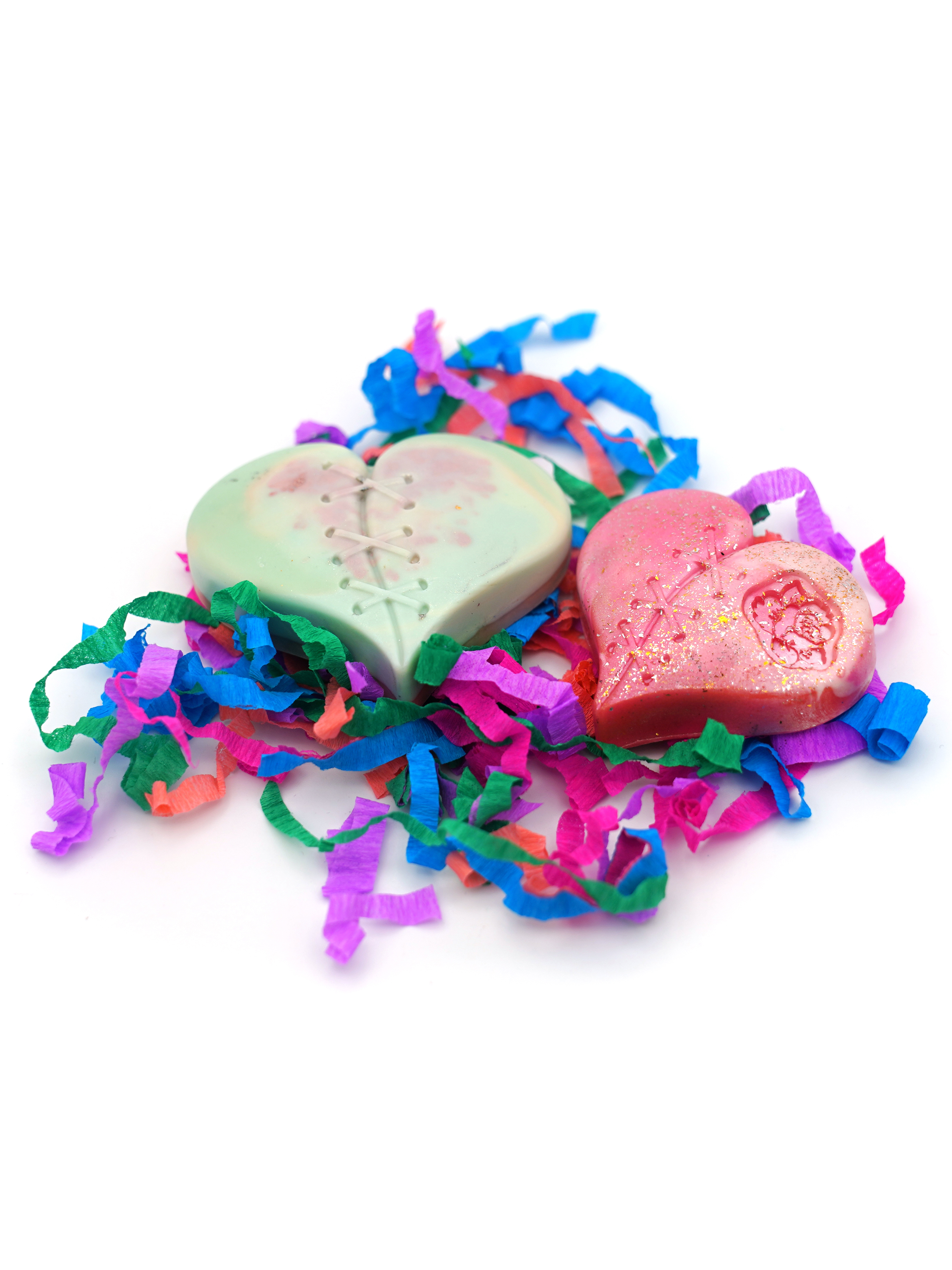 Мыло Сердечки зеленое и розовое с золотом