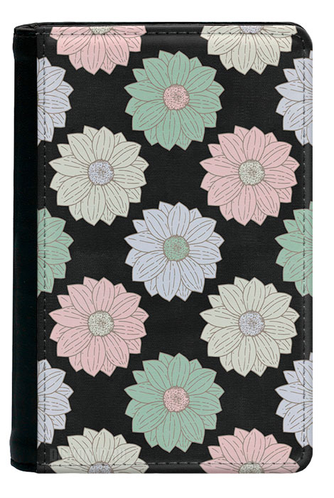 Обложка на паспорт Крупные цветы на темном фоне / Паттерн #010