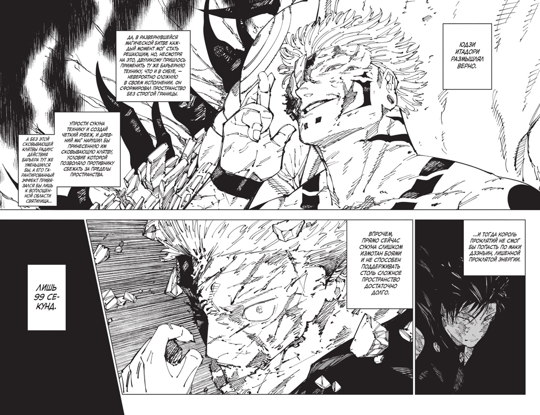 Лучшие маги-заклинатели вступают в решающую схватку с Двуликим Сукуной, но, даже действуя сообща, они не в силах сокрушить того, кто воплощает собой абсолютное зло. Последней надеждой человечества становится Юдзи Итадори, тот самый юноша, в теле которого когда-то и пробудился Король Проклятий. На стороне Двуликого – многовековой опыт и убийственные проклятые техники, на стороне Юдзи – несгибаемая воля к победе. И только одному из противников суждено поставить точку в этой кровопролитной магической битве!..